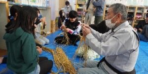 5年生が地域の方に教わりながらおやす作りを行いました。伝統行 …
