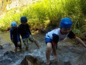 9/8 川は楽しいね 全校川遊び 投稿日: 2025年10月7日 投稿者: 編集者泰阜小学校 9月8日(月)全校川体験学習を行いました。グリーンウッドの方にサポートしていただき、安全に地元の自然の中でたっぷりと遊ぶことができました。夏休み明けの残暑が残る中で、全校で川に親しむ楽しい1日になりました。 Post Views: 46